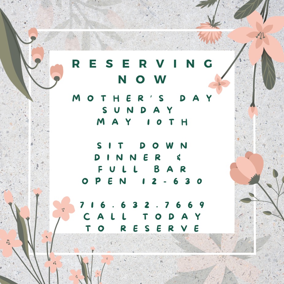 Now taking reservations for Mother's Day 2026! Please call to make reservations (716) 632-7769